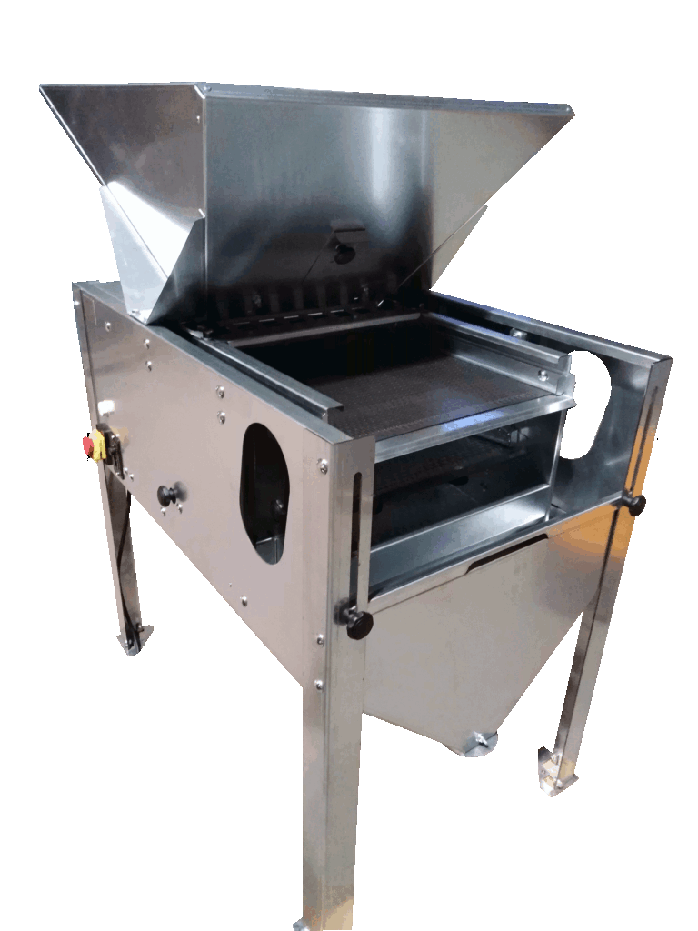 Notre machine de nettoyage sépare en une seule opération en quatre fractions : éléments légers, grosses impuretés et grains trop gros, grains nettoyés, grains trop petits et fines impuretés.